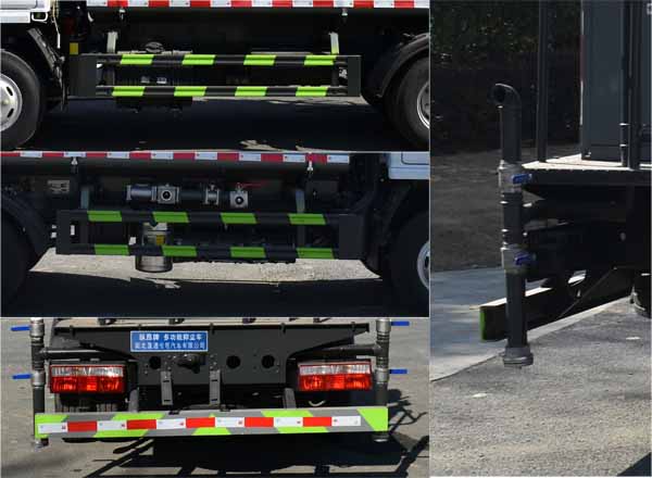 該車用途為抑塵降霾.主要裝置為罐體及噴霧裝置;罐體有效容積:3.98立方米,罐體外形尺寸(長×長軸×短軸)(mm):2900×1650×1200;ABS型號/廠家:ABS/ASR-12V-4S/4M/襄陽東風隆誠機械有限責任公司,側、后防護材料均為:Q235碳鋼,連接方式均為:螺栓連接,后部防護截面尺寸(mm):120×50,后部防護離地高度(mm):390;隨底盤選裝駕駛室,選裝噴霧裝置樣式,選裝底盤附件位置。隨底盤選裝燃油箱,電瓶,尿素罐,儲氣筒左右安裝位置,選裝噴灑裝置樣式。 |
