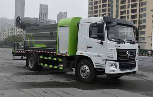 該車用途為抑塵降霾.主要裝置為罐體及噴霧裝置;隨底盤選裝駕駛室;罐體總容量:10.47立方米,罐體有效容積:9.98立方米,罐體外形尺寸(×長軸×短軸)(mm):3400×2450×1580,ABS型號及生產廠家為:3631010-C2000/東科克諾爾商用車制動系統(十堰)有限公司,J ABS/焦作博瑞克控制技術有限公司;側、后防護材料均為:Q235碳鋼,連接方式均為:螺栓連接,后部防護截面尺寸(mm):120×50,后部防護離地高度(mm):450.選裝罐體左右樣式,選裝噴霧裝置樣式。
