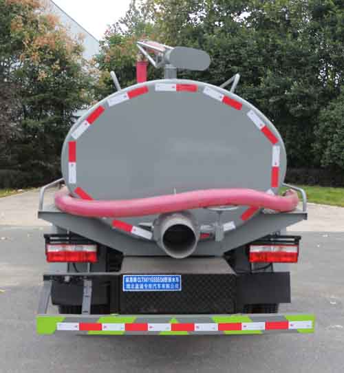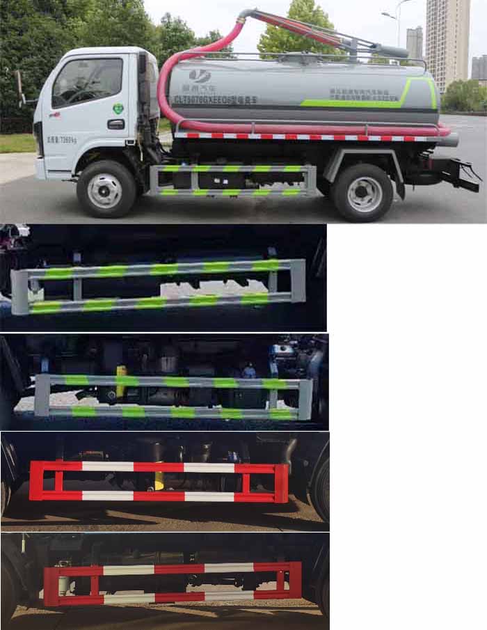 罐體總容量:4.63立方米;罐體有效容積:4.41立方米;罐體外形尺寸(×長軸×短軸)(mm):3500×1650×1200;隨底盤選裝燃油箱,電瓶,尿素罐,儲氣筒左右安裝位置,選裝側面及后部樣式。ABS型號:ABS/ASR-12V-4S/4M;ABS生產企業:襄陽東風隆誠機械有限責任公司;選裝描述:隨底盤選裝駕駛室;側、后防護材料均為:Q235碳鋼,連接方式均為:螺栓連接,后部防護截面尺寸(mm):120×50,后部防護離地高度(mm):420;專用功能及裝置:主要專用裝置:罐體及吸糞裝置,主要用于抽排運污水、糞便、泥漿等液態污物.