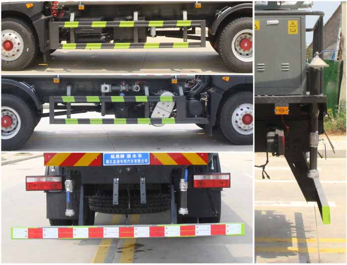 該車主要用于城鄉(xiāng)園林綠化噴灑作業(yè);主要裝置為水罐及噴灑裝置;罐體總?cè)萘?/span>:10.7立方米;罐體有效容積:10.2立方米;罐體外形尺寸(長×長軸×短軸)(mm):4800×2300×1300.ABS系統(tǒng)生產(chǎn)廠家,型號:焦作博瑞克控制技術(shù)有限公司,J ABS;襄陽東風(fēng)隆誠機械有限責(zé)任公司,ABS/ASR-24V-4S/4M.側(cè)、后防護材料均為:Q235碳鋼,連接方式均為:螺栓連接,后部防護截面尺寸(mm):120×50,后部防護離地高度(mm):480.隨底盤選裝限速裝置,限速89km/h.隨底盤選裝燃油箱,電瓶,尿素罐,儲氣筒左右安裝位置,選裝噴霧裝置樣式.選裝箭頭燈裝置,選裝前部電子水炮裝置樣式,選裝前部不帶電子水炮;當(dāng)前部帶電子水炮時,前伸500mm,整車長度為9100mm,8550mm;當(dāng)前部不帶電子水炮時,前伸為0mm,整車長度為8600mm,8050mm.選裝罐體頂部高位花灑裝置及方形罐口,選裝尾部自流口裝置,選裝工具箱.采用底盤4500mm軸距改裝.后軸僅采用鋼板彈簧懸架. |