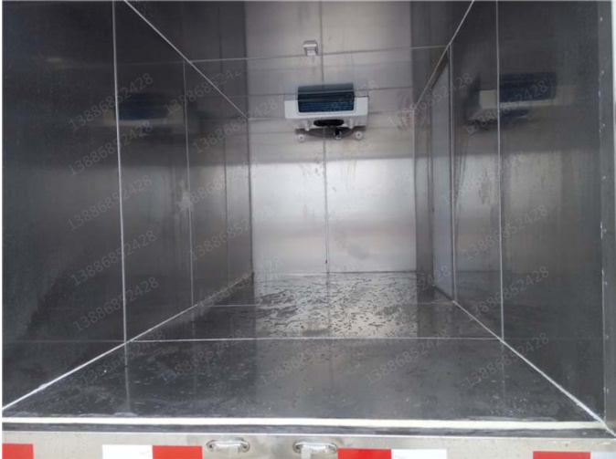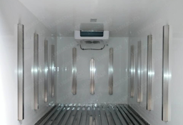 采用國際最先進的1200噸真空吸附一體成型制造。通用三明治斷橋隔熱工藝,是由鍍鋅管龍骨架加上中間8CM保溫環保材質擠塑板填充、防水木板用螺絲連接,外壁板選用國內優質的機制1.8mm厚度玻璃鋼,內壁選用1.2mm厚度熱縮板,廂體厚度80mm,門框厚度80mm,底板上面整體鋪鋁花紋板,高強度粘合劑,箱體真空吸附8小時以上,確保箱體一次成型,杜絕箱體起包,脫膠。廂體周邊3mm加厚型鋁合金包邊,不銹鋼包角,304不銹鋼門鎖,不銹鋼一體式門框,加大型防碰撞膠皮,廂內LED節能照明燈?蛇x-5°至-18°制冷機組.