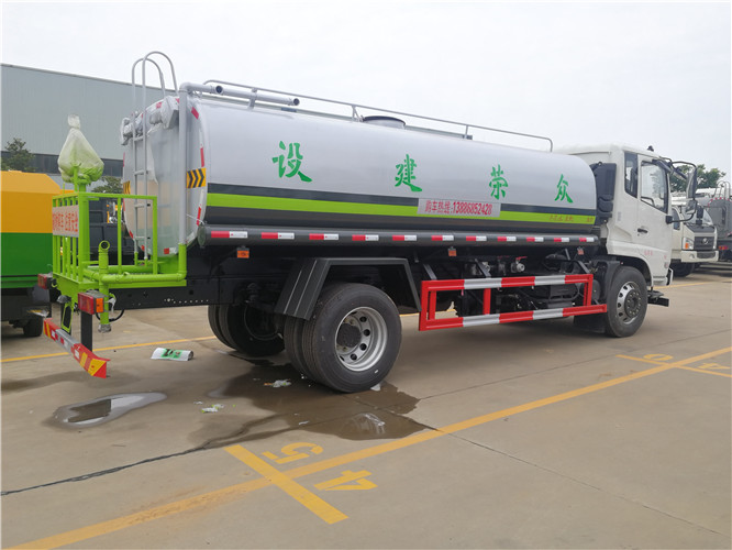 6、灑水車前噴頭位置較低,靠近地面,噴灑壓力較大,可用于沖洗路面;后噴頭位置較高(灑水車后噴頭一般左右各安裝一個),灑水面較寬,可用于公路施工灑水,使用后噴頭時,應將前噴管關閉;使用可調噴頭灑水時,灑水寬度可根據需要調整。灑水寬度越寬,中間重疊量越少,灑水密度越均勻。