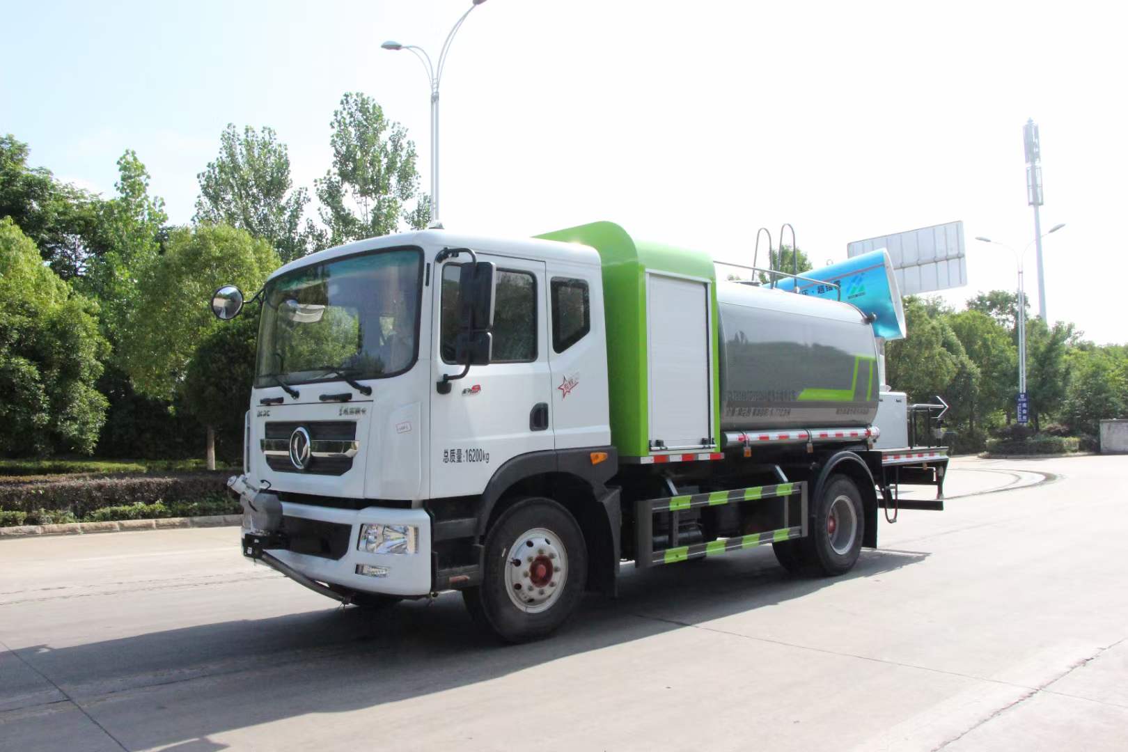 多利卡80米霧炮車_東風多利卡D9抑塵車_京牌12方抑塵車_湖北盈通專用汽車有限公司,該車用途為抑塵降霾.主要裝置為罐體及噴霧裝置.罐體總容量:9.2立方米,罐體有效容積:8.77立方米,罐體外形尺寸(長×長軸×短軸)(mm):2800×2450×1720.ABS系統(tǒng)生產廠家,型號 :焦作博瑞克控制技術有限公司,J ABS;襄陽東風隆誠機械有限責任公司,ABS/ASR-24V-4S/4M.隨底盤選裝限速裝置,限速裝置限速(km/h):89.側、后防護材料均為:Q235碳鋼,連接方式均為:螺栓連接,后部防護截面尺寸(mm):120×50,后部防護離地高度(mm):490.僅采用底盤3950mm軸距改裝.選裝燃油箱安裝位置.選裝噴霧裝置樣式,選前部電子炮樣式;選裝前部不帶電子霧炮.當前部選裝不帶電子霧炮時,車長7750mm,無前伸.當前部選裝帶電子霧炮時,車長8250mm,前伸為500mm. |