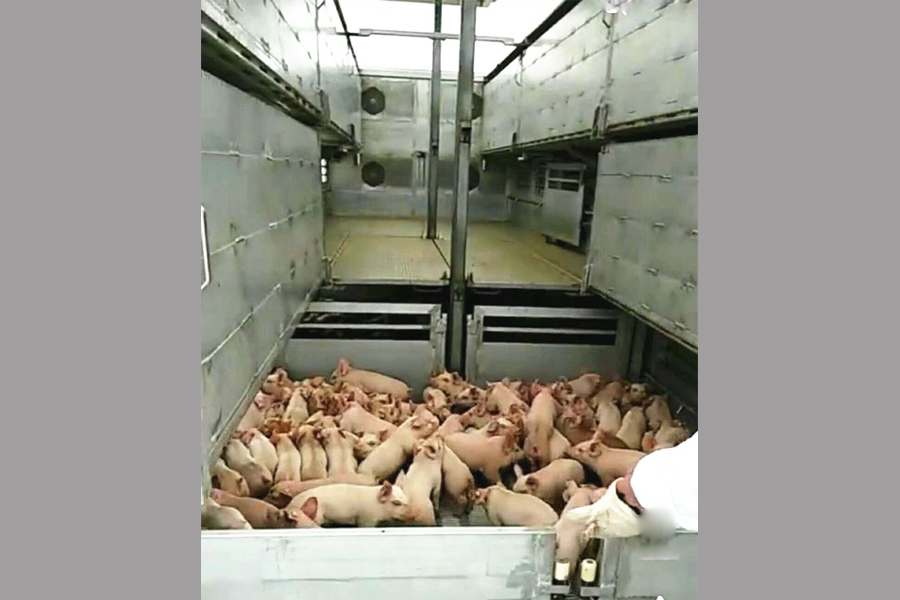畜禽運輸車是我公司在借鑒國內(nèi)外產(chǎn)品的基礎(chǔ)上,結(jié)合用戶實際需求新研發(fā)的一款運輸仔豬、生豬、雞苗等畜禽的專用功能較強的運輸車輛,是我公司傾力打造的一款專門面向活禽、牲畜運輸市場的一款高端運輸車,該款運輸車旨在增強活禽、牲畜在運輸過程中的舒適度、減少死亡率,提高運輸效率,該車配備設(shè)施完善、自動化程度高。廂式畜禽運輸車可用于成品豬、生豬、豬仔、雞苗跨省運輸,全程無泄漏,有糞液收集系統(tǒng)箱體采用全鋁合金型材制作,質(zhì)量輕、抗腐蝕性強。箱體中層安裝保溫隔板,頂部采用玻璃鋼,有效避免高溫傳導(dǎo),控制箱體內(nèi)部溫度。車廂內(nèi)部采用全液壓可調(diào)整分層結(jié)構(gòu),二層、三層、四層16欄(根據(jù)需求選擇)飲水系統(tǒng),側(cè)推拉通風(fēng)滑窗,帶電子排風(fēng)扇,視頻監(jiān)控,溫度顯示監(jiān)控,中間有隔欄,每層約承重300頭仔豬的重量。車廂后部選裝垂直液壓升降尾板,更實用!