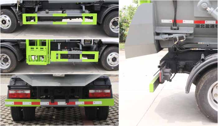 東風餐廚垃圾車,藍牌餐廚垃圾車,廚后垃圾車,餐廚掛桶式垃圾車,多利卡自裝卸垃圾車,該車用于餐廚垃圾收集清運,主要專用裝置為垃圾收集箱和提升機構.側、后防護材料均為:Q235碳鋼,側防護采用螺栓連接,后防護采用焊接連接,后部防護截面尺寸(mm):120×50,后部防護離地高度(mm):430.ABS型號/廠家:ABS/ASR-12V-4S/4M/襄陽東風隆誠機械有限責任公司,僅采用底盤3308mm軸距改裝.選裝側面樣式.