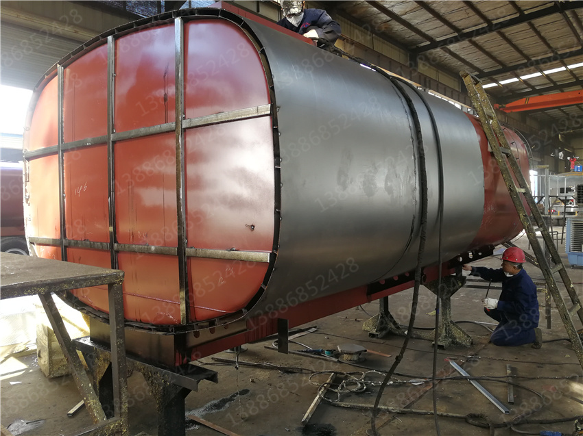 3. 保層溫的制作是在水罐外部另外焊接10mm厚的支撐骨架,然后用保溫材料將骨架內部填充滿,**在骨架外蒙上一層外皮。 保溫層外表鐵皮采用8mm厚高強度耐磨板,可選擇使用不銹鋼分鏡面8K或磨砂板