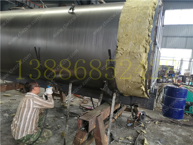 3. 保層溫的制作是在水罐外部另外焊接10mm厚的支撐骨架,然后用保溫材料將骨架內部填充滿,最后在骨架外蒙上一層外皮。 保溫層外表鐵皮采用8mm厚高強度耐磨板,可選擇使用不銹鋼分鏡面8K或磨砂板