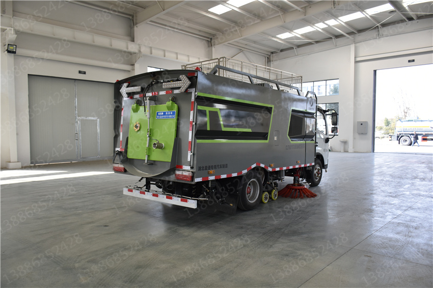 東風福瑞卡洗掃車_國六5.5方洗掃車_物業(yè)小區(qū)洗掃車_小型柴油清掃車該車主要作用于路面的清掃作業(yè);專用裝置為清掃裝置、垃圾箱。ABS型號/廠家:ABS/ASR-12V-4S/4M/襄陽東風隆誠機械有限責任公司;側防護裝置為專用裝置代替,后防護材料均為:Q235碳鋼,連接方式為:螺栓連接,后部防護截面尺寸(mm):120×50,后部防護離地高度(mm):370.隨底盤選裝駕駛室。選裝燃油箱,電瓶,尿素罐,儲氣筒左右安裝位置。
