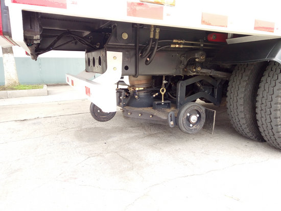 防護材料:Q235A碳鋼,左右側面防護裝置與專用裝置相干涉,故豁免;后下部防護與車架采用焊接連接,后部防護斷面尺寸(mm):100?0,后部防護離地高度(mm):510,隨底盤選裝駕駛室。該車僅選用(mm):3950軸距,采用帶ABS的底盤,ABS型號為3631010-C2000,生產廠家為東風電子科技股份有限公司制動系統公司。