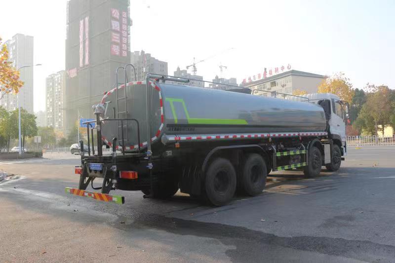 天龍25方灑水車_東風天龍灑水車_國六25方灑水車_前四后八灑水車價格,該車主要用于城鄉園林綠化噴灑;主要裝置為罐體及噴灑裝置:罐體總容積:19.67立方米;罐體有效容積:18.74立方米;罐體外形尺寸(×長軸×短軸)(mm):7300×2450×1620;側、后防護材料均為:Q235碳鋼,連接方式均為:螺栓連接,后部防護截面尺寸(mm):120×50,后部防護離地高度(mm):490;ABS生產廠家:東科克諾爾商用車制動系統(十堰)有限公司,型號:3631010-C2000.隨底盤選裝駕駛室,選裝噴霧裝置樣式,選裝箭頭指示燈裝置,僅采用軸距(mm):1995+3800+1350改裝.選裝前部自動水炮裝置.選裝前部自動水炮裝置時,樣車對應的前伸為500mm,對應的車長為(mm):11400,11750.隨底盤選裝限速裝置,限速89km/h.選裝油箱電瓶安裝位置,選裝無高位花灑裝置.