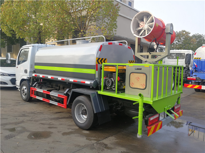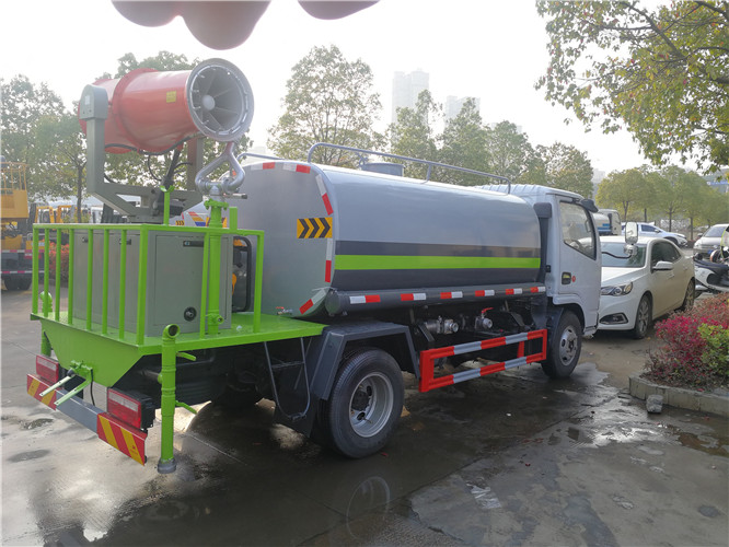 6、灑水車前噴頭位置較低,靠近地面,噴灑壓力較大,可用于沖洗路面;后噴頭位置較高(灑水車后噴頭一般左右各安裝一個),灑水面較寬,可用于公路施工灑水,使用后噴頭時,應將前噴管關閉;使用可調噴頭灑水時,灑水寬度可根據需要調整。灑水寬度越寬,中間重疊量越少,灑水密度越均勻。