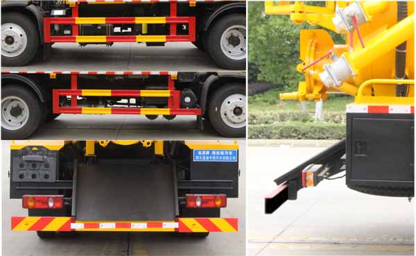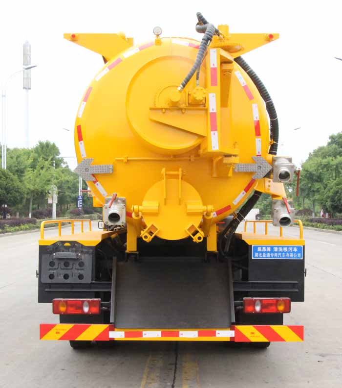 東風10方清洗吸污車,華神10方疏通吸污車,管道疏通車,市政下水道清理車,高壓清洗吸污車,該車用于下水道排污及疏通,專用裝置:罐體、吸污泵、清洗沖刷總成.該車輛具有舉升功能.罐體外形尺寸(罐體總長×直徑)(mm):4900×1750(前面1600mm為清水罐,后部3300mm為污水罐);污水罐總容量:7.04立方米,污水罐有效容積:6.7立方米,介質:液態污物,密度800千克/立方米;清水罐總容量:3.6 立方米,有效容積:3.6 立方米,介質:,密度1000千克/立方米;清水罐和污水罐為獨立罐體,清洗功能時用清水罐,吸污功能時用污水罐,污水罐和清水罐不可同時滿載,兩罐不可同時使用.ABS型號及生產廠家為:3631010-C2000/東科克諾爾商用車制動系統(十堰)有限公司,J ABS/焦作博瑞克控制技術有限公司;側、后防護材料均為:Q235碳鋼,側防護采用螺栓連接,后防護采用焊接連接,后部防護截面尺寸(mm):120×50,后部防護離地高度(mm):450.隨底盤選裝駕駛室新風格裝飾件,隨底盤選裝油箱,尿素罐,電瓶框布置位置.選裝側面樣式,選裝后部出口樣式.
