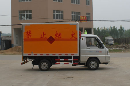 廂體頂部封閉,不可開啟。運輸介質:黑火藥,壓縮黑火藥,電引爆雷管,爆破炸藥,點燃導火索,專用煙火制品。運輸類項號:1.1D,1.1D,1.1B,1.1D,1.4G,1.1G。 選裝側面不開門;選裝新前圍及前部燈具,選裝保險杠。配裝限速裝置,最高時速80km/h。僅采用有前盤制動器和安裝ABS的底盤。僅采用排氣管前置的底盤。僅采用子午線輪胎。安裝帶衛星定位功能的行駛記錄儀。僅采用LJ465Q-2AE發動機。ABS系統控制器型號/生產企業:CM-4XL-15VIf/廣州市科密汽車制動技術開發有限公司。僅選用軸距為2370mm的底盤。